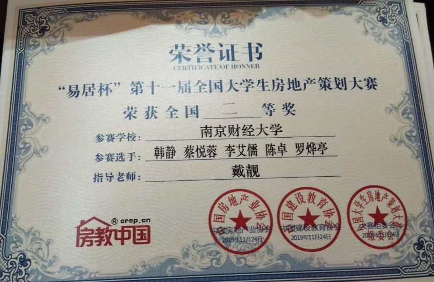 房地产系安得广厦团队(成员:韩静、蔡悦蓉、李艾儒、陈卓、罗烨亭,指导教师:戴靓)荣获全国二等奖。吃瓜视频