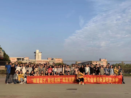 西苑操场,根据预先安排的人员分配分为八组,每组都同时包含南财南师公管院学生会成员,共同合作参与活动。