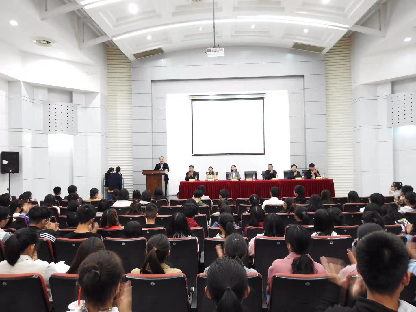 新生教育第一讲结束后,胡永远书记作会议总结,并希望同学们尽快适应大学环境,及早谋划奋斗目标,并持之以恒的努力。
