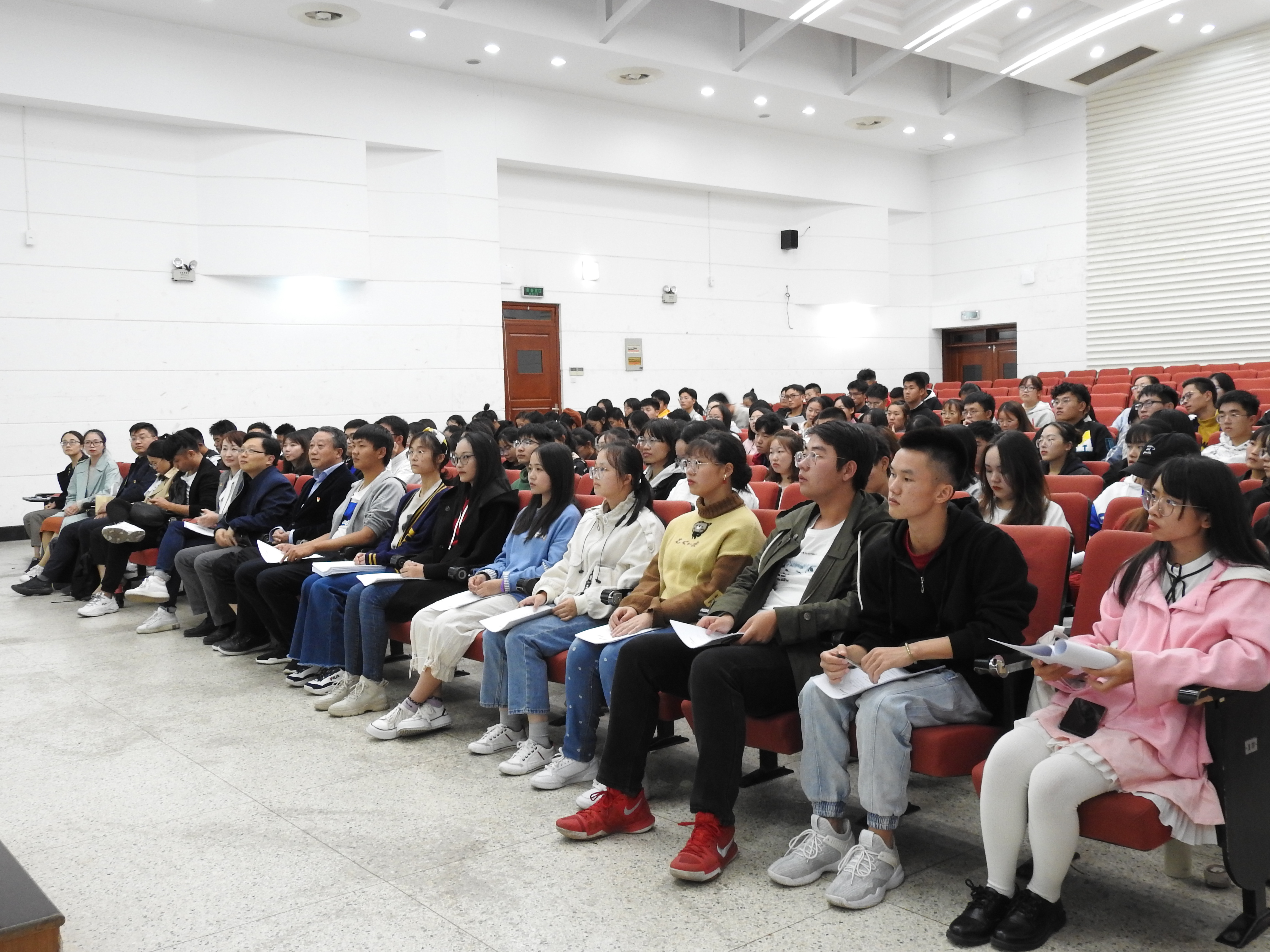 2019级新生教育第一讲在仙林校区德经楼报告厅举行,学院党委书记胡永远、院长黄斌、党委副书记张荣霞、副院长李永乐,有关教师、全体新生参加会议。会议由胡永远书记主持、黄斌院长主讲。
