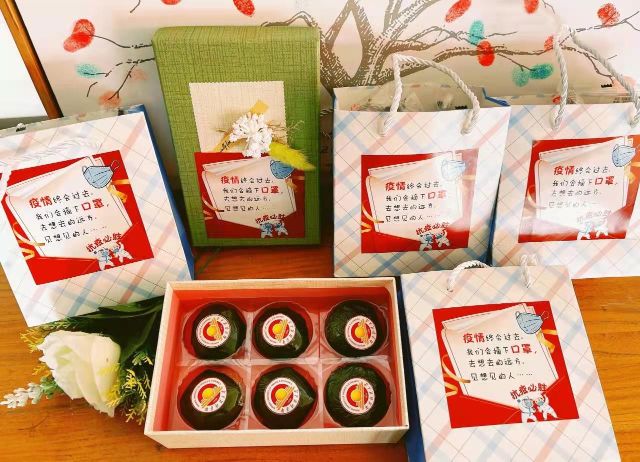 的辅导员们带着自制青团来到学生宿舍,送去关心和祝福。在现场,辅导员电话连线了几名同学的父母,向其介绍了同学们最近的学习和生活情况,了解了这几个家庭的状况,并且询问他们是否需要帮助。青团盒上还细心地贴上了这样一句话:“疫情终会过去,我们会摘下口罩,去想去的远方,见想见的人。”这是公管院辅导员老师们的祝愿,也是所有人的期盼。