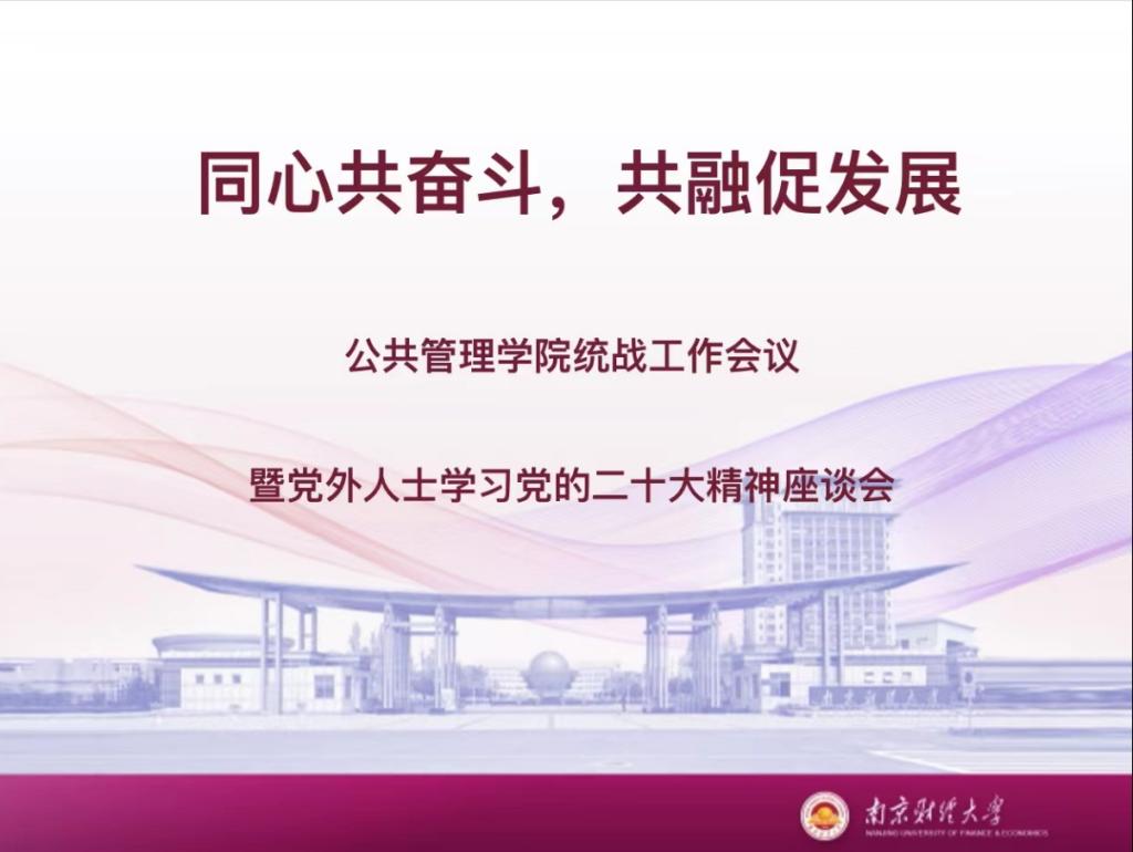 胡永远书记结合党的二十大精神,重点对二十大报告中的关键词“团结奋斗”、“全过程人民民主”进行了深入解读,他指出,学院党外知识分子要主动学习贯彻落实党的二十大精神,画好团结奋斗同心圆、筑牢团结奋斗共同体,努力成为学院和学校全过程人民民主的重要参与者。