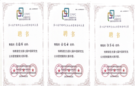 2022年10月至2023年4月,我校MPA教育中心成功组织7支队伍参加第七届中国研究生公共管理案例大赛,经过激烈角逐,共斩获三等奖2项(学校、团队各1项),3位教师被聘为中国研究生公共管理案例大赛评委。我校集体荣获三等奖,除“爆”安良小队(队员:杨航、陈东强、徐珊、邱文君、章旭辉,指导教师:黄建伟、詹国辉)提交的作品《碎片化的安全监管如何治理?——街道网格员的“吹哨”后的苦恼》荣获大赛三等奖、全国前百强。詹国辉、金志云、汪家焰等三位教师被聘为中国研究生公共管理案例大赛评委。