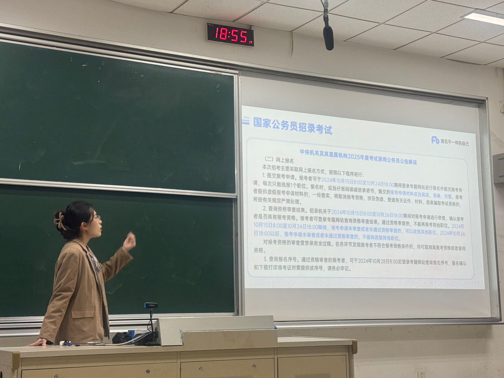飒飒秋风起,落叶与细雨相伴,金秋十月,是毕业生备考公务员考试的重要阶段,为了让同学们进一步了解公务员考试,讲师王老师于1025日晚在德济楼103教室为同学们召开考公指导讲座。