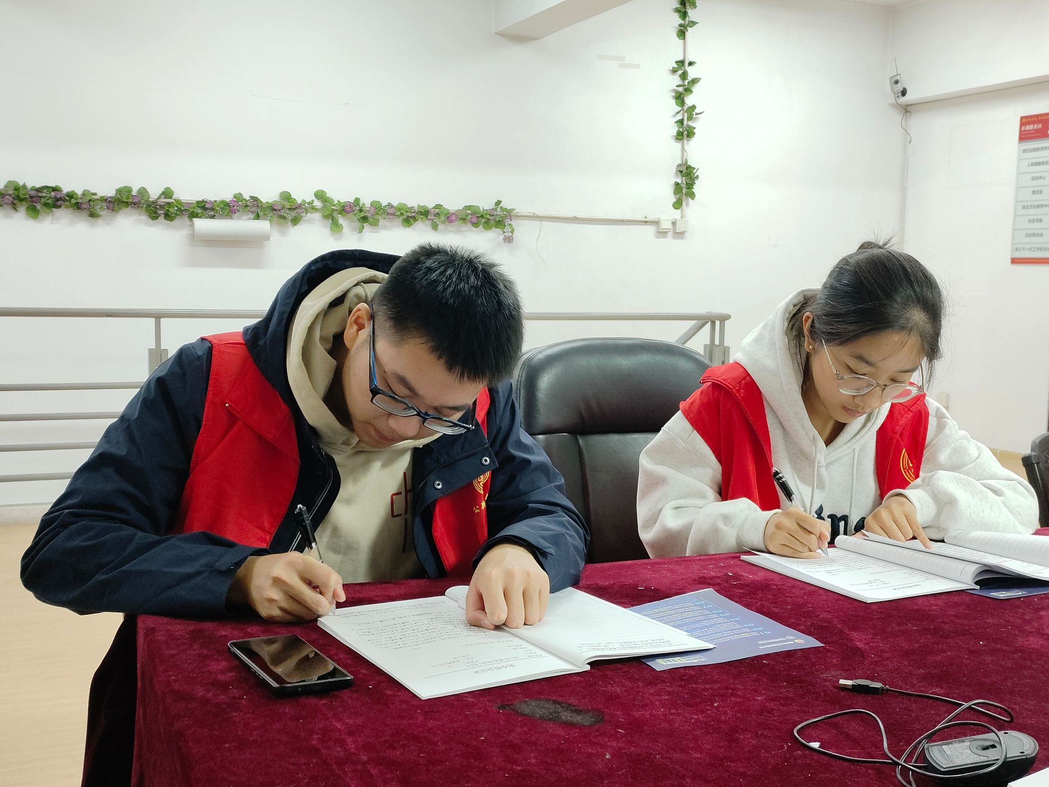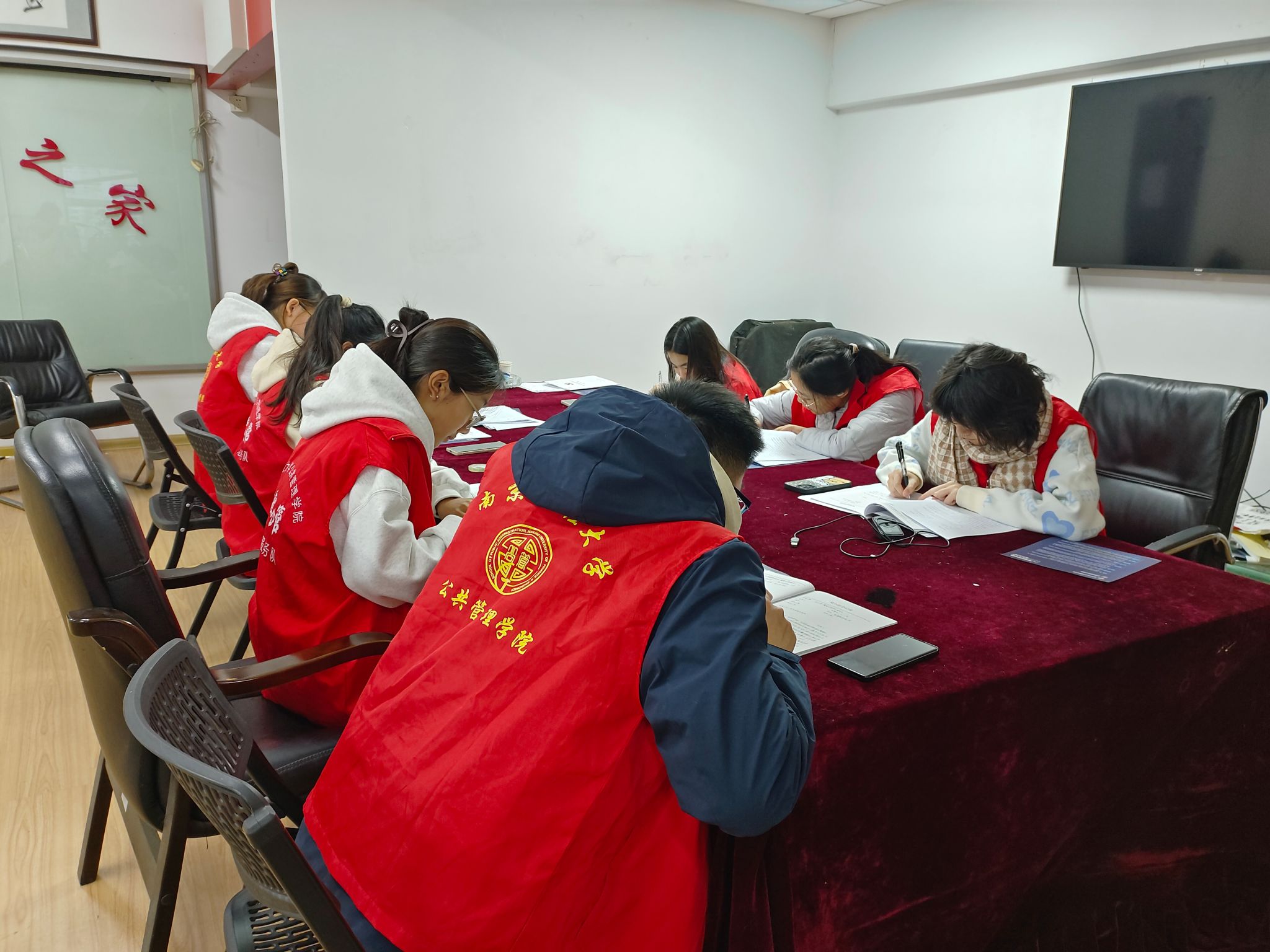 在抵达活动现场后,志愿者们便有条不紊地展开志愿活动。领队将志愿队伍分成两批——第一批的八人小组负责在社区居委会协助社区工作人员整理社区文件以及相关档案,并通过工作人员的耐心介绍,了解社区当下的工作模式。过程中双方进行深度交流和讨论,分析了现有模式下的优缺点,进而讨论如何创新工作形式以提高社区治理水平。