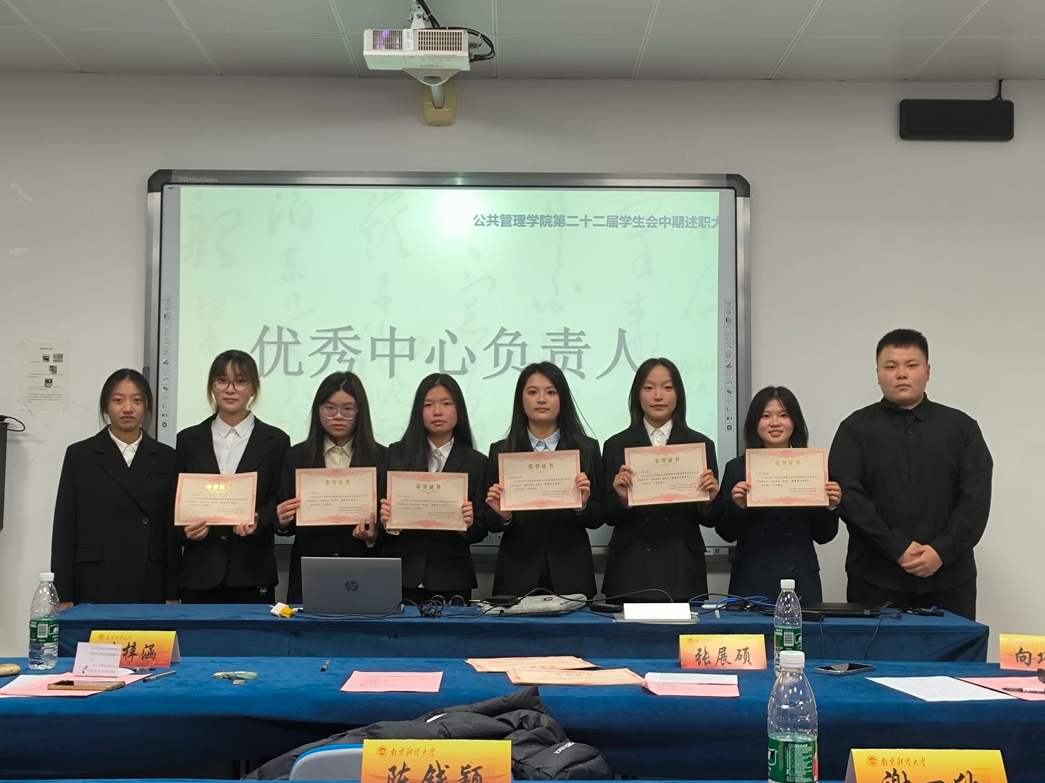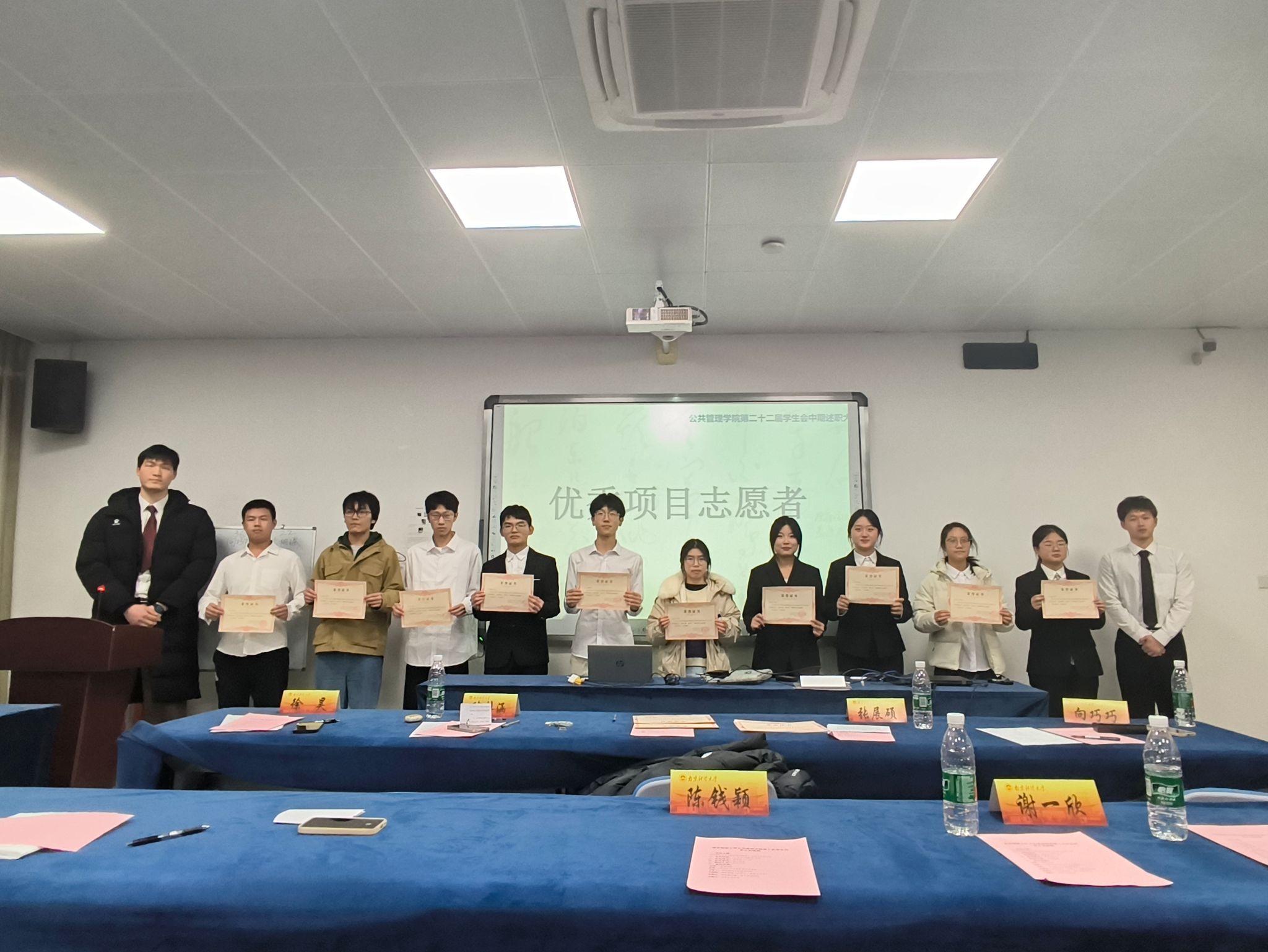 学生会主席团成员为他们颁奖。颁奖结束后,大家一起进行了集体合照以作纪念。