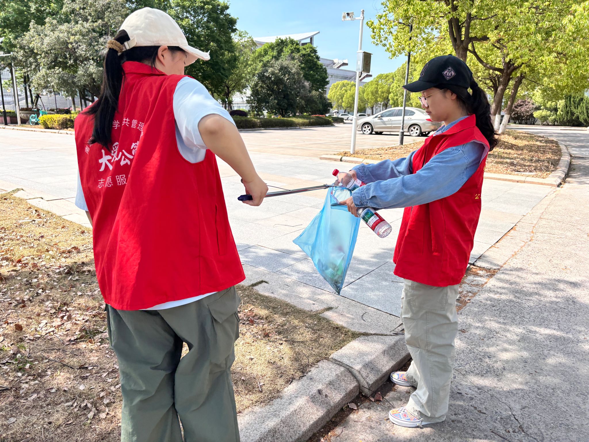 此外,在清理垃圾的过程中,志愿者们遇见了在烈日下辛勤工作的学校环卫工人。大家把提前准备好的饮用水送到他们手中,并真诚地表达了对他们的感谢与敬意。劳动节不只是庆祝的节日,更是致敬劳动者的时刻。环卫工作者们用日复一日的付出守护校园的洁净,这份坚守与无私值得所有人尊重和学习。