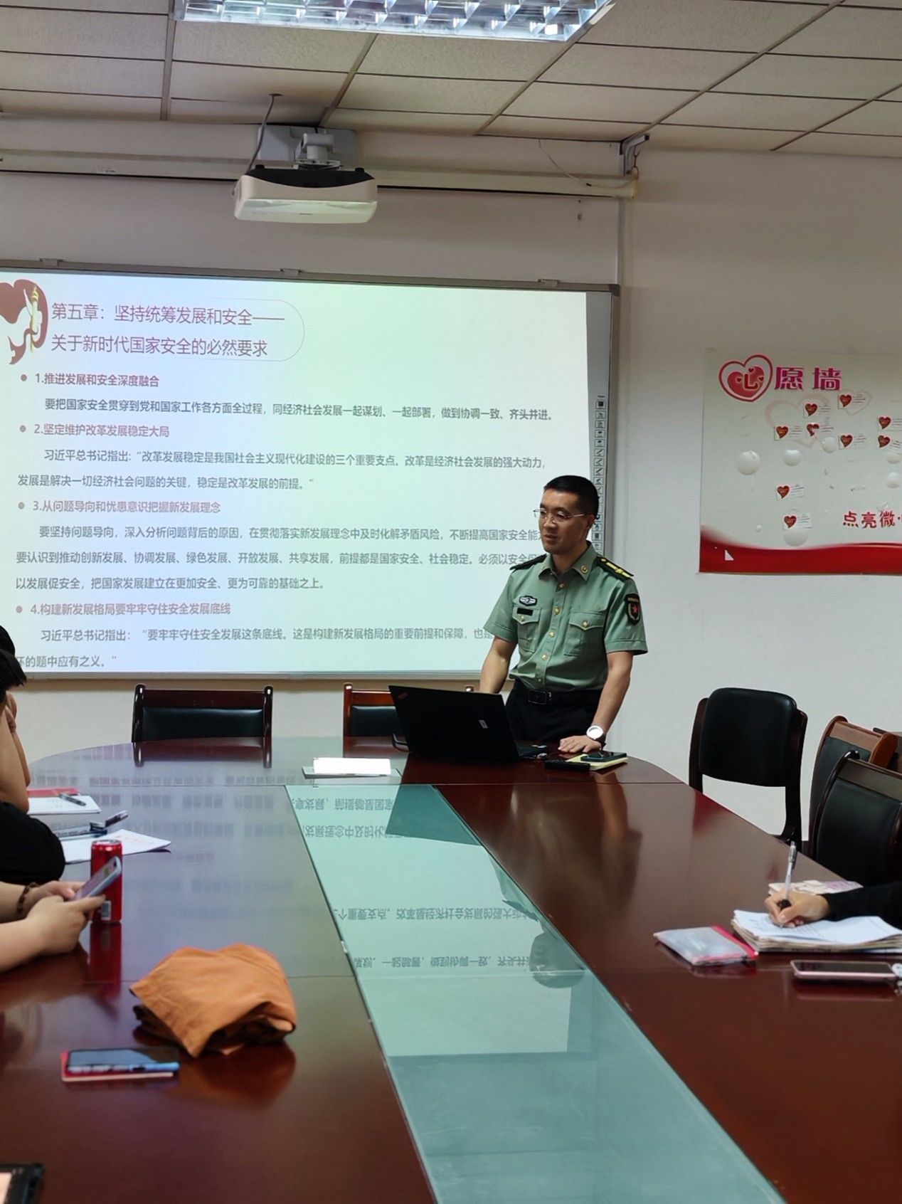 组织全体发展对象开展以“坚守国家安全底线,勇担时代 青年使命”为主题的国家安全专题党课。本次党课特邀校保卫处副处长潘雪峰担任主讲人。