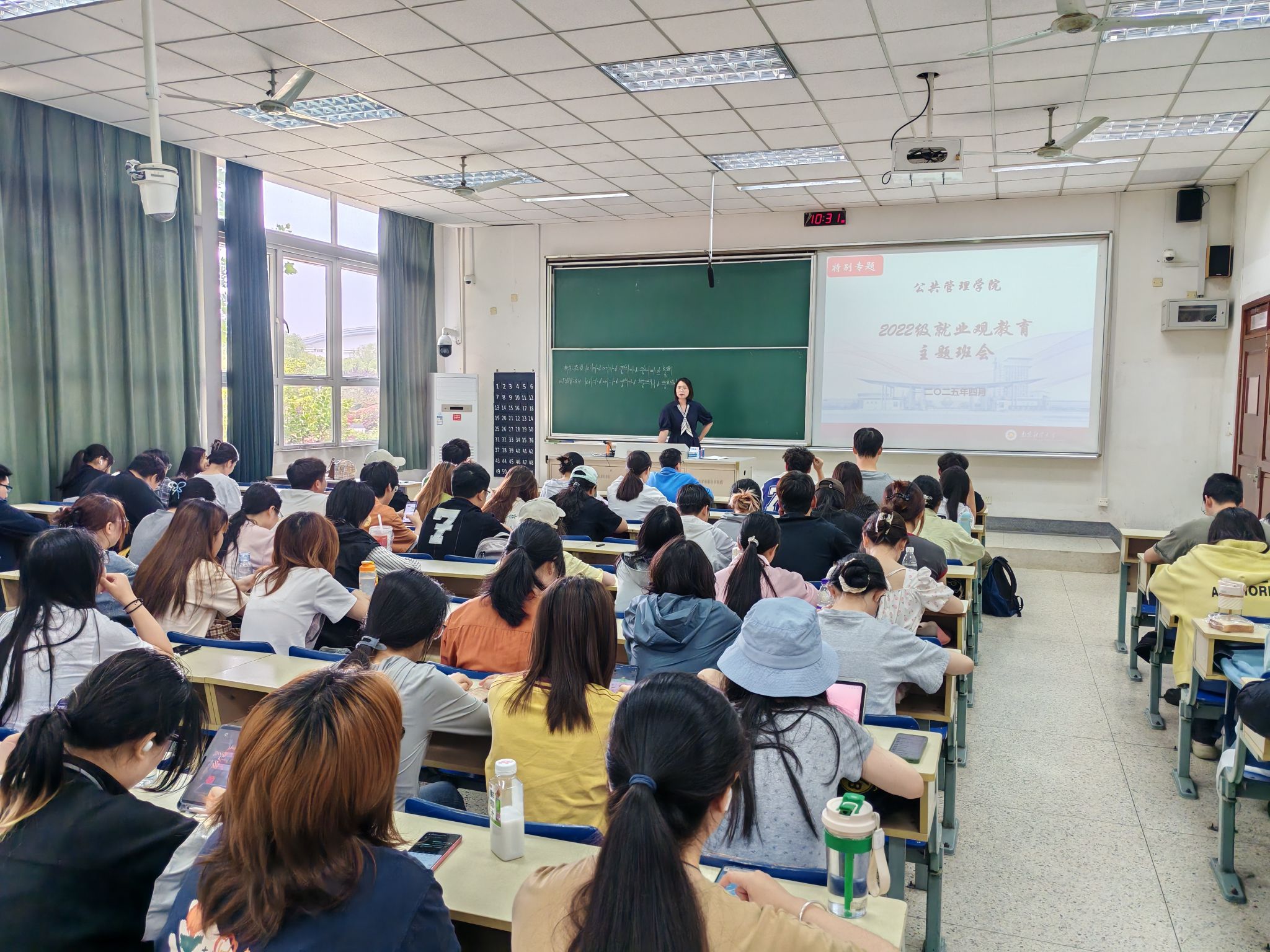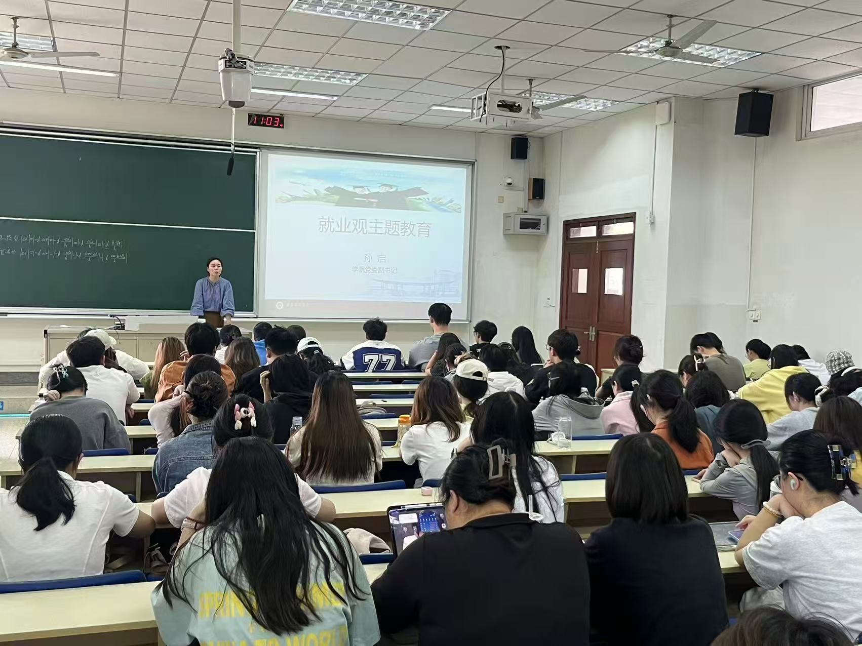 面向2022级全体学生召开就业观教育主题班会。学院党委副书记孙启、辅导员李小燕及2022级全体同学参加活动。