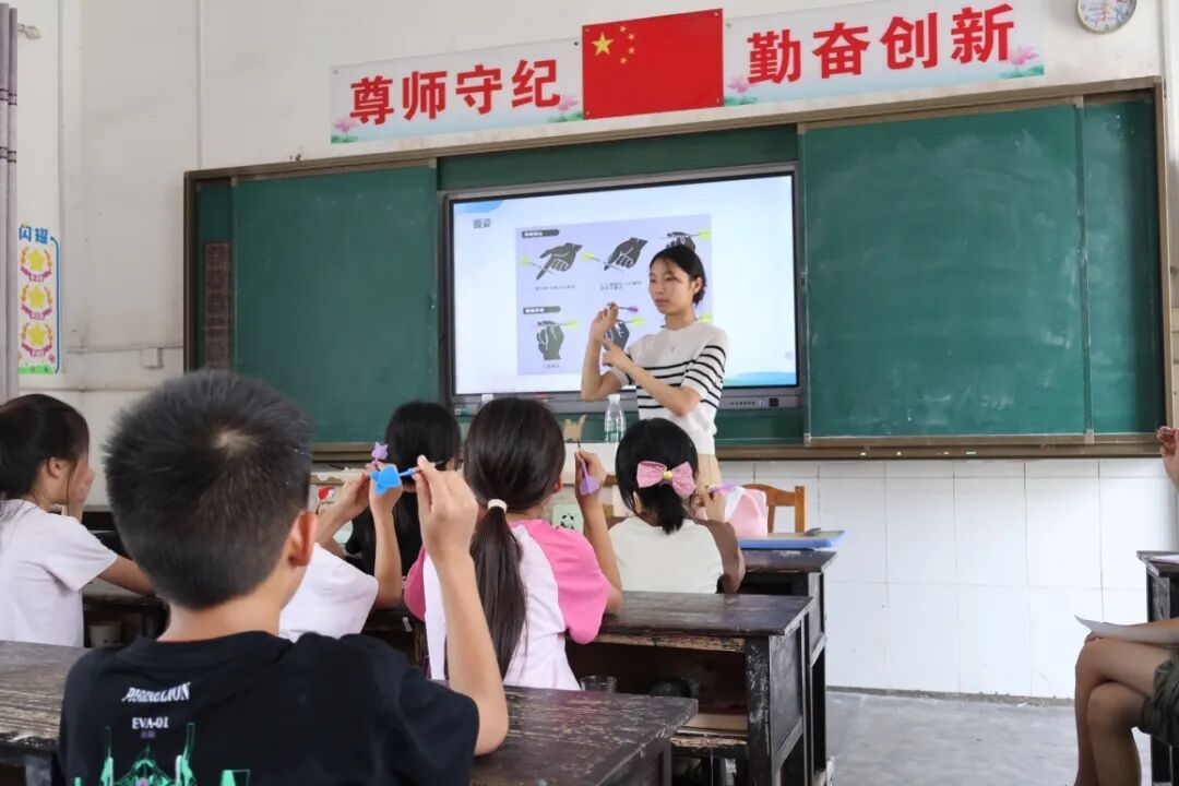 团队以“公济天下,管育青年”为指引,围绕“知识拓展、心灵关怀、艺术熏陶、实践探索”教育闭环,搭建多元素养培育支教模式。在课程设计上,低年级设小小实验家、心理、美工等启蒙课程,激发兴趣与创造力;高年级有话剧、地理、历史文化等提升课程,拓宽视野、厚植底蕴。还特设具有多元内容的盲盒课程,彰显财经底色、体现人文关怀。旨在让乡村孩子在多元课程滋养下,提升综合素养,埋下自信成长、全面发展的种子。
