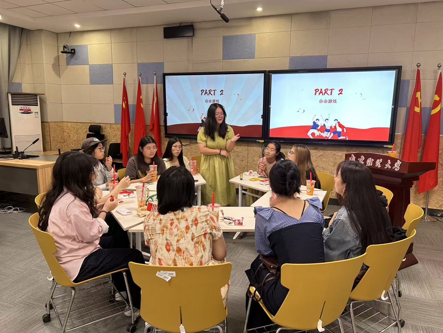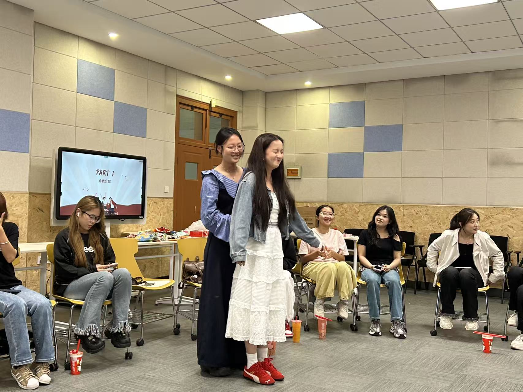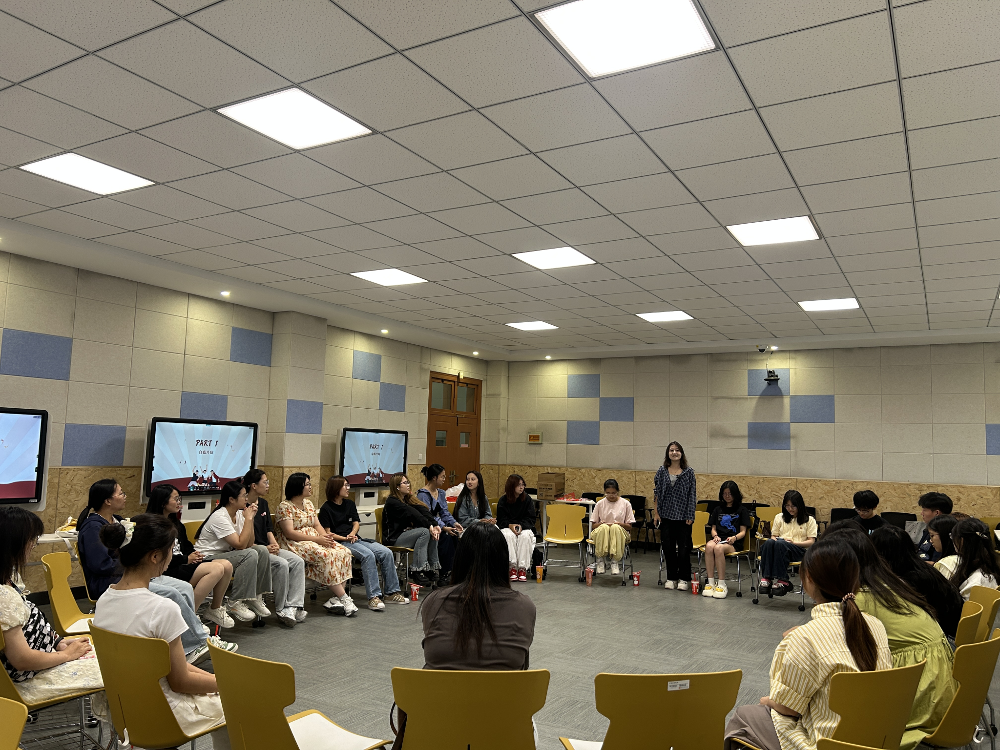 活动伊始,自我介绍环节在轻松的氛围中拉开帷幕。成员们围坐成圈,目光聚焦于中心。团委副书记王嘉率先起身,以亲切幽默的口吻进行自我介绍,副书记姜力慈、张欣然紧随其后,瞬间打破现场拘谨感 。随后,各部门部长依次介绍,展现出沉稳可靠的一面;新成员们也是活力满满,大方分享兴趣爱好,同时成员们口中的家乡故事让彼此之间多了份地域文化的共鸣 。