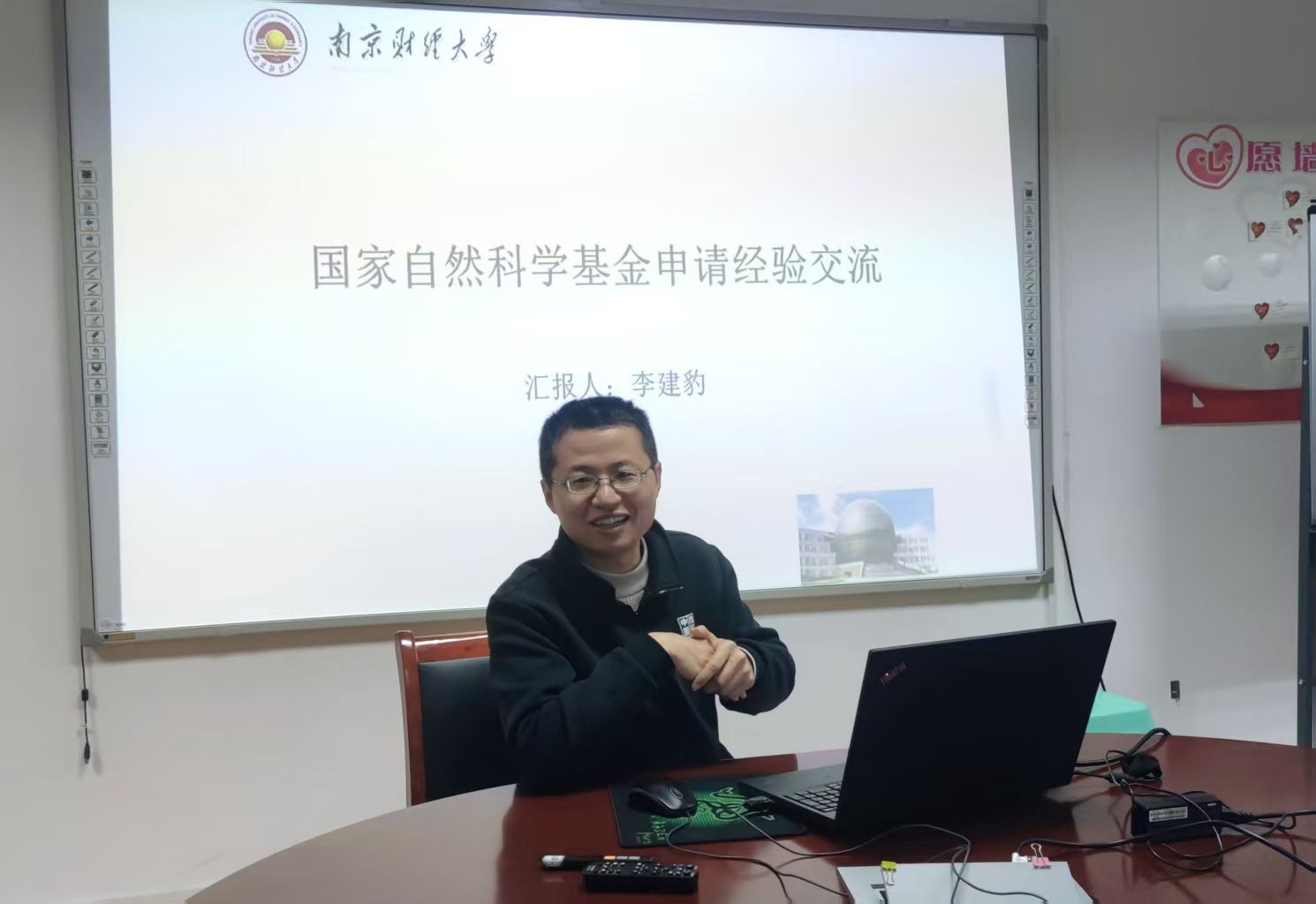在经验分享环节,2025年国家自然科学基金面上项目成功立项的李建豹老师应邀为申报2026年国家两基项目教师及学院MPA教师作了专题报告。他结合自身成功实践,从“申报书撰写的核心要点”、“申报全流程的时间与进度把控”以及“如何高效吸收并回应评审专家意见”等多个关键维度,毫无保留地分享了宝贵经验。分享结束后,李建豹老师还与在场教师就申报中遇到的具体问题进行了深入探讨与交流,现场学术氛围浓厚。