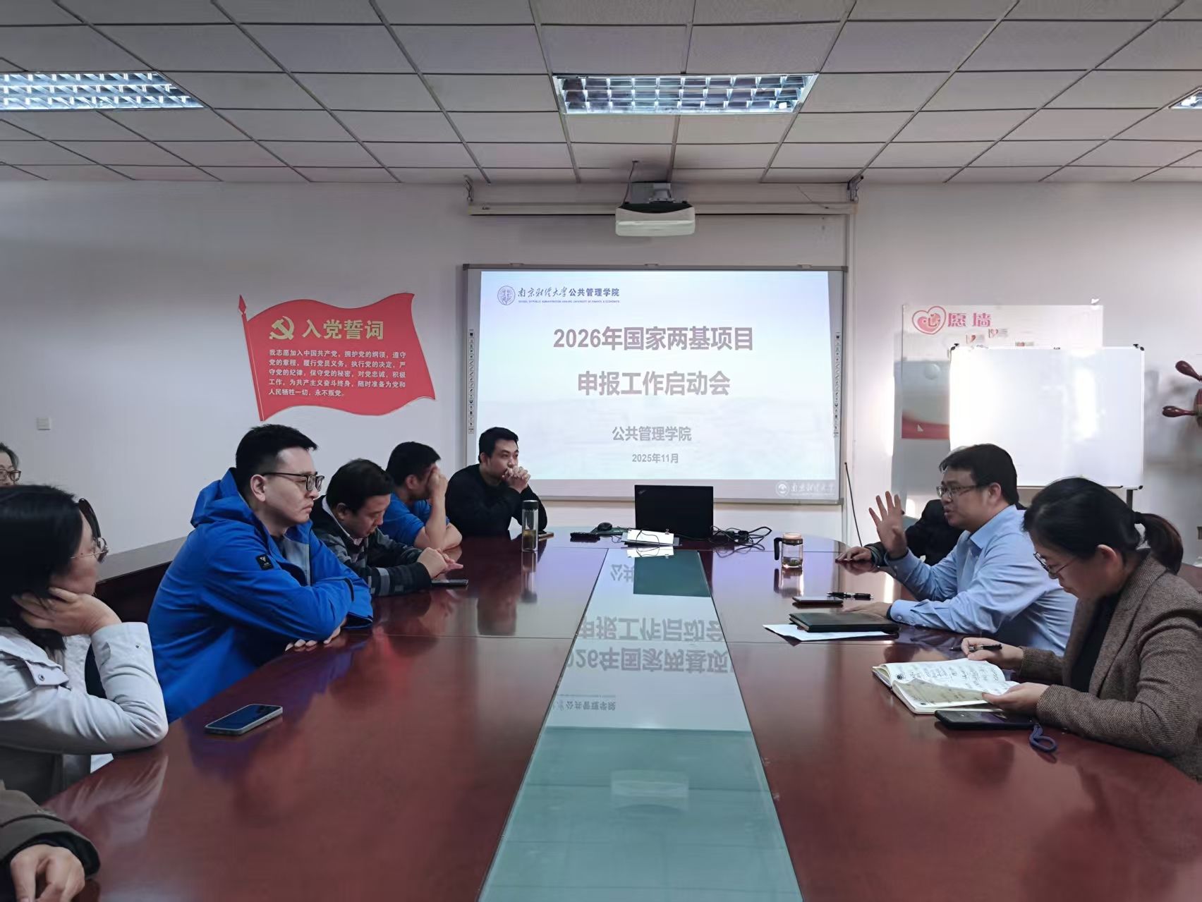 会议伊始,院长黄建伟教授作开场动员。他首先回顾了学院在2025年度国家两基项目申报中取得的丰硕成果,对成功立项的教师表示热烈祝贺,并对学院科研工作的扎实业绩予以高度认可。黄建伟院长勉励申报2026年度项目的教师早做准备、精心谋划,力争在新一轮申报中实现新的突破,为学院学科发展与科研实力提升贡献力量。