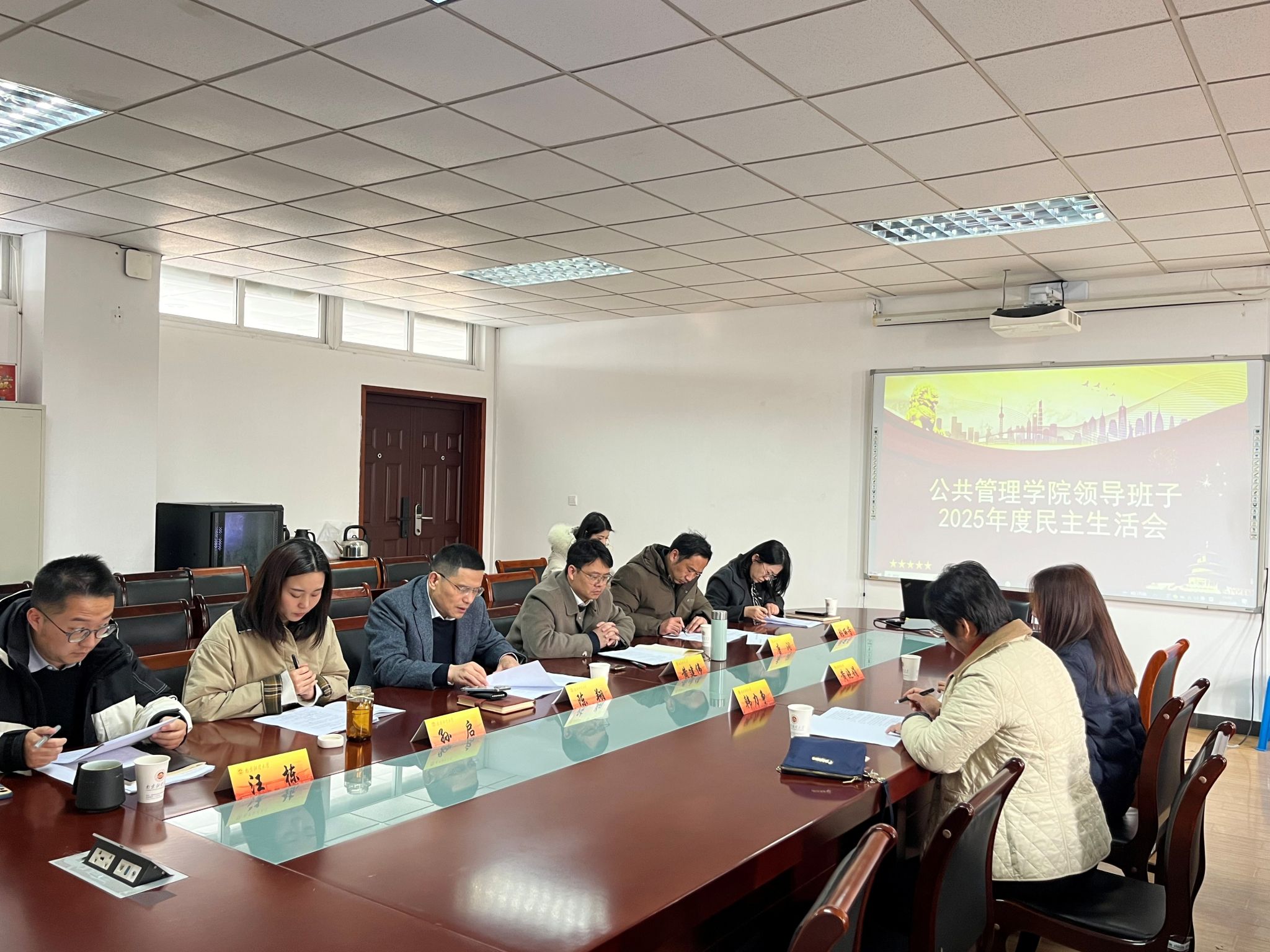 在德济楼508会议室召开处级党员领导干部2025年度民主生活会。党委学生工作部部长、学生处处长韩力争到会指导。学院党委书记陈翔主持会议,学院领导班子全体成员参加会议。