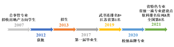 经过近10年建设,本专业已成为长三角地区房地产人才培养基地,现为省级一流专业建设点和江苏省特色专业,根据武书连排名,连续三年位居江苏省第1位。2021年“软科中国大学专业排名”中位列A类专业,全国第8位。