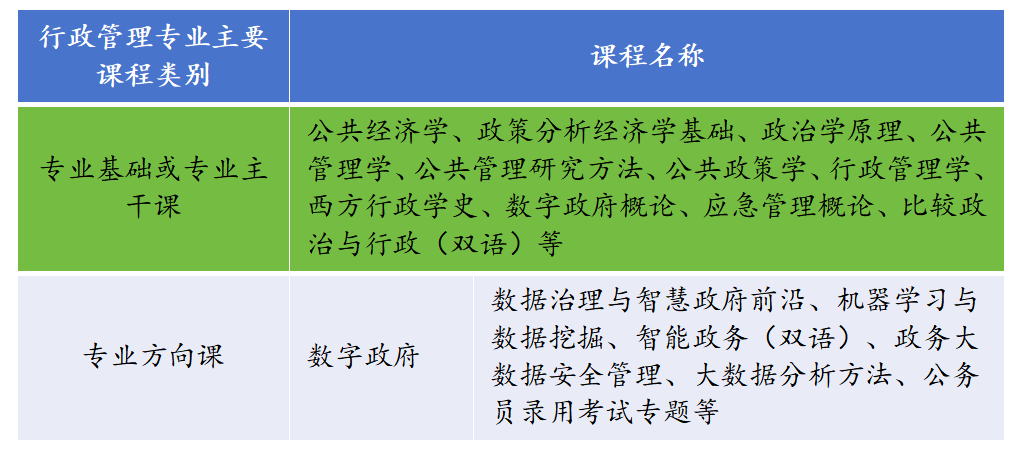 三、行政管理专业(数字政府方向)课程