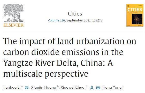 高水平论文:多尺度视角下长三角地区土地城镇化对碳排放的影响研究(The impact of land urbanization on carbon dioxide emissions in the Yangtze River Delta, China: A multiscale perspective)