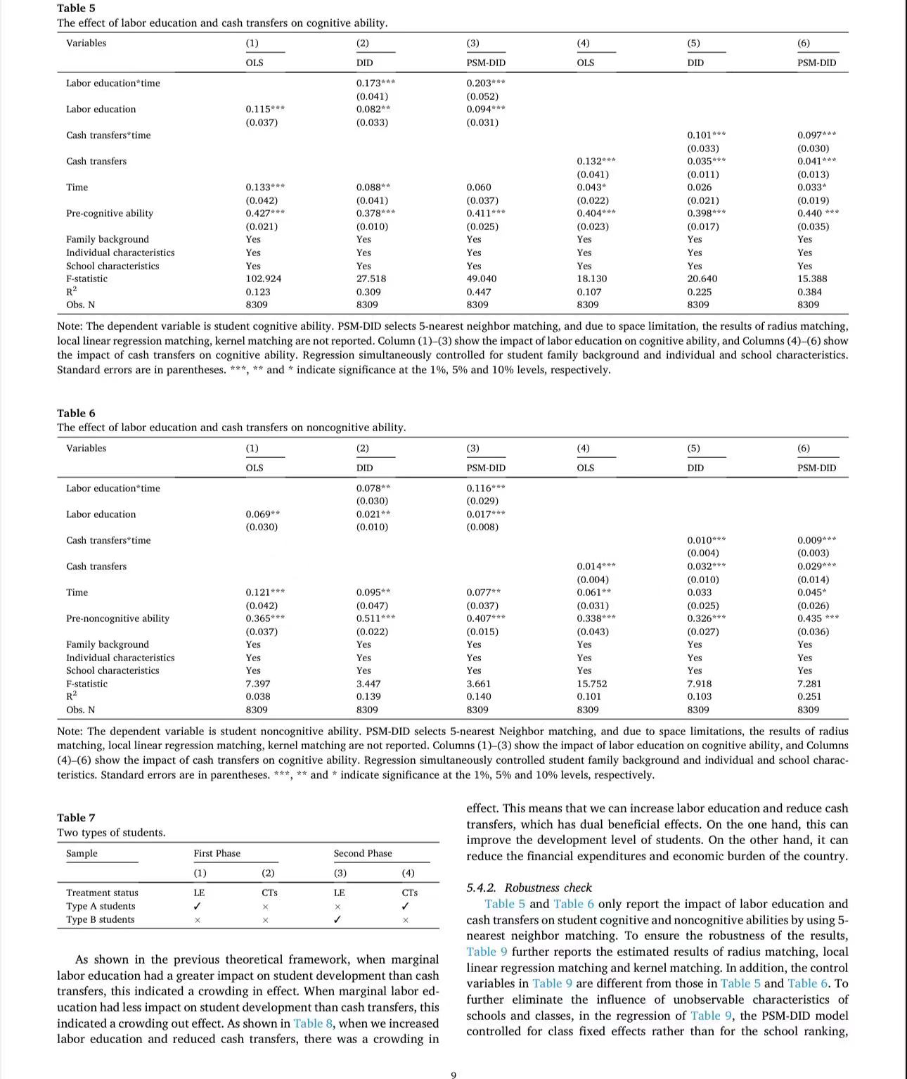 论文名称:劳动教育与教育财政现金支付对学生发展的影响(Labor education, cash transfers and student development: Evidence from China)