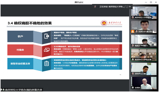 黄建伟教授及硕士研究生陈东强应北京大学国家治理研究院邀请,参加了2022国家治理论坛(青年学者论坛),并分享了题为“确权确股不确地的农地流转何以成功?来自Y村的案例分析与发现”的论文。本次论坛以线上的形式举行。