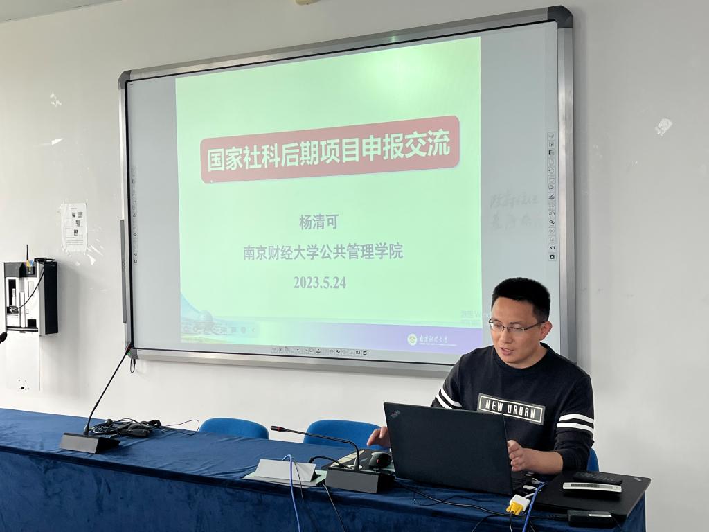 在德济楼502会议室召开了2023年国家社科后期资助项目申报启动会。特邀2022年国家社科基金后期资助项目获得者朱高立、汪家焰、杨清可老师做申报经验分享。启动会由副院长宁泽逵主持,院长助理张丽芳、部分科研骨干教师参会。
