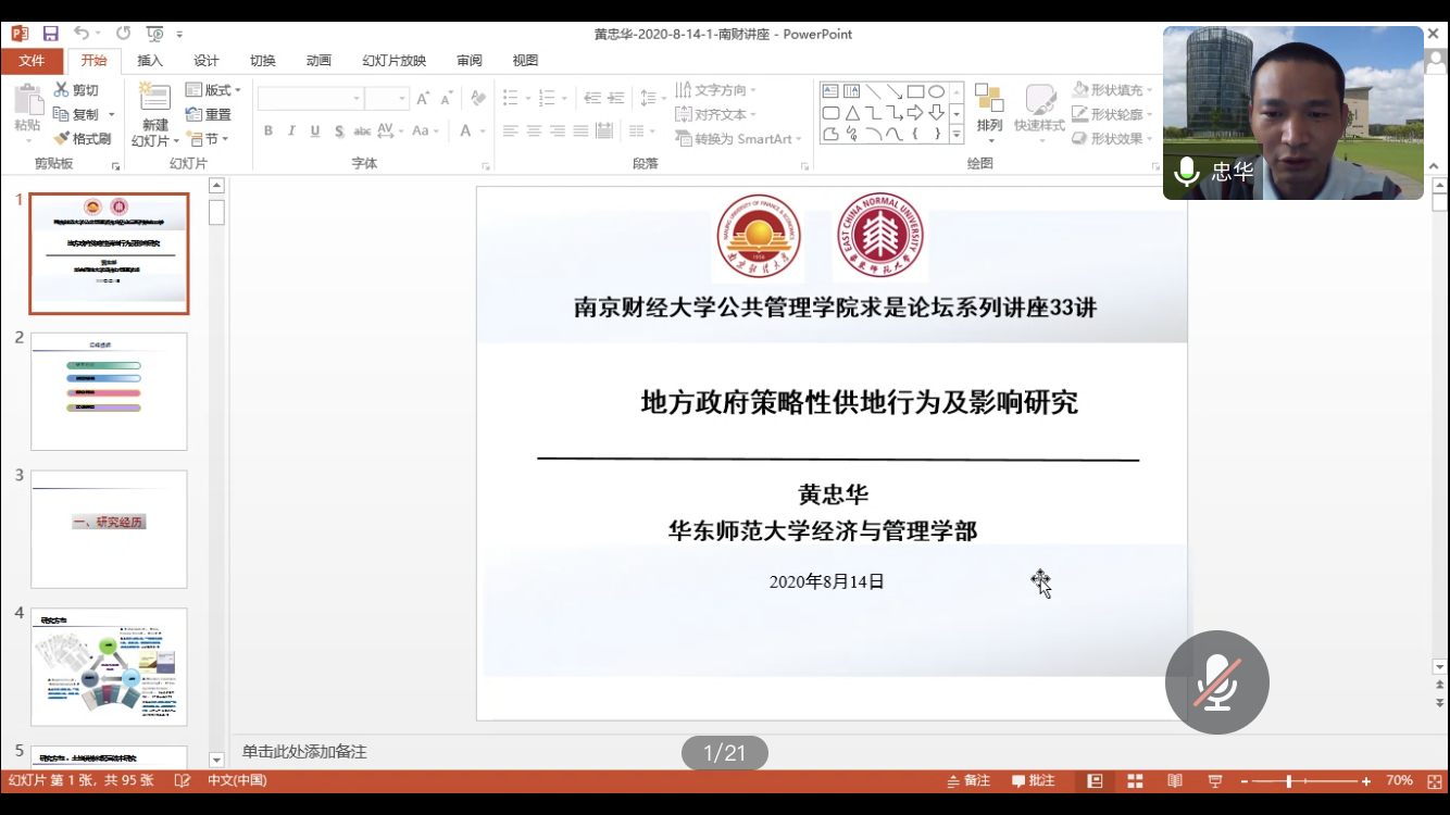 邀请,华东师范大学博士生导师黄忠华教授在线(腾讯会议)作了题为“地方政府策略性供地行为及影响研究”的学术报告。报告由吃瓜视频