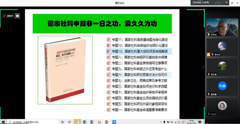 邀请,云南大学经济学院博士生导师文传浩教授在线(腾讯会议)作了题为“国家社科基金如何进行科学选题”的学术讲座。我校部分青年教师参加讲座,讲座由吃瓜视频