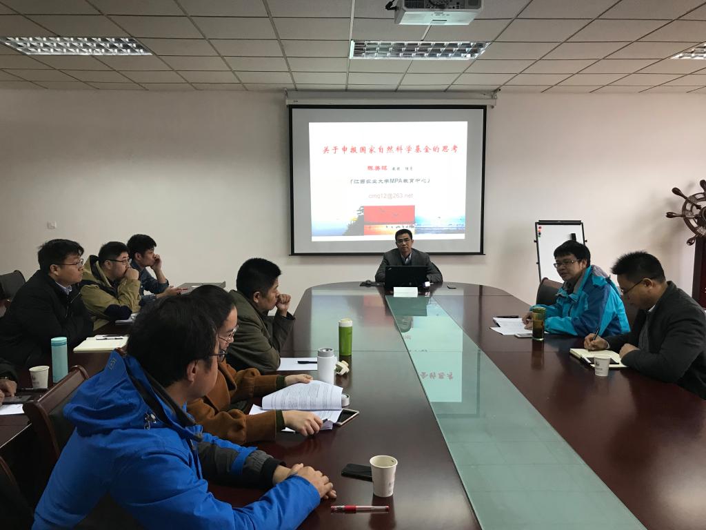 1月24日下午,国务院特殊津贴获得者、江西农业大学MPA教育中心主任陈美球教授应邀在我校吃瓜视频 5楼会议室作了题为“关于申报国家自然科学基金的思考”的学术讲座。