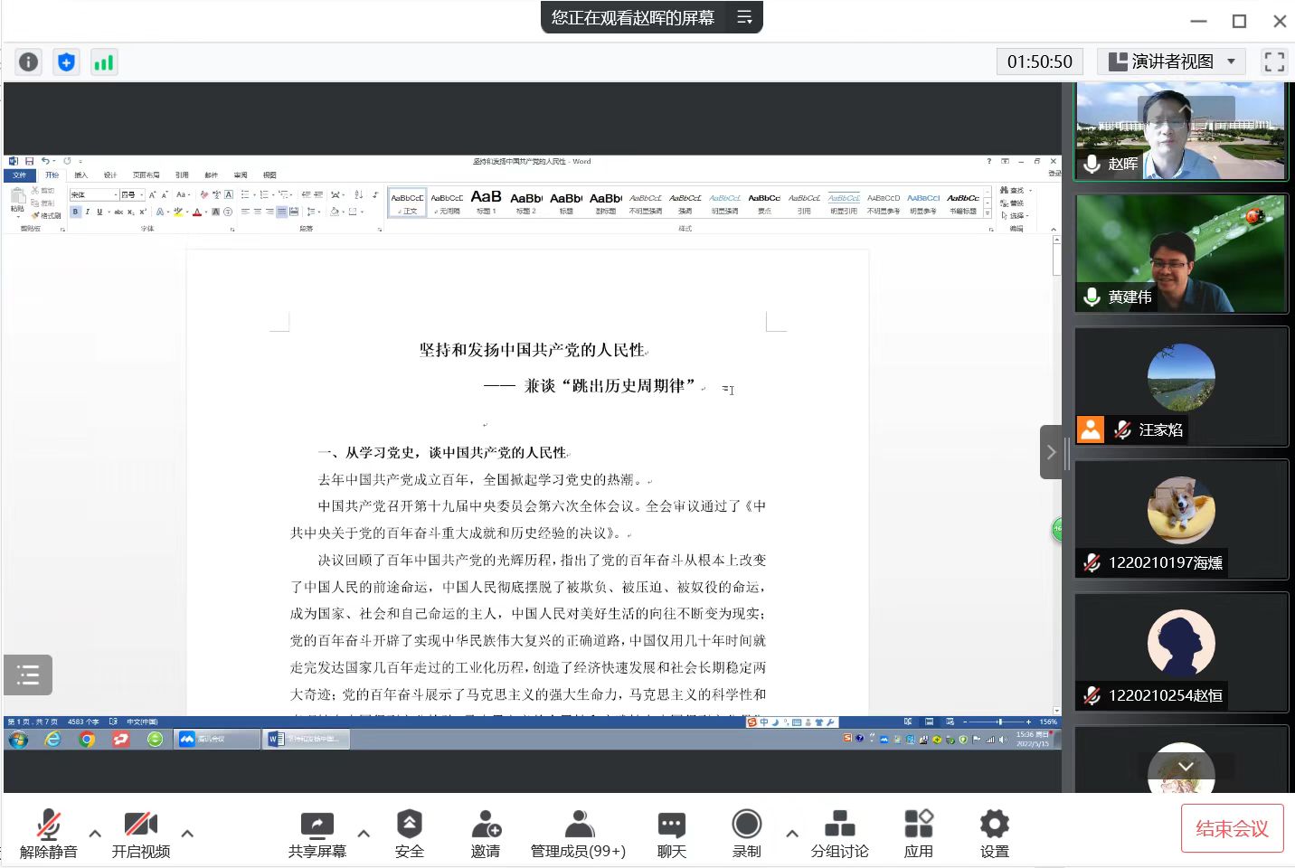 MPA中心主任赵晖教授在线作了题为“坚持和发扬中国共产党的人民性——兼谈‘跳出历史周期律’”的讲座。吃瓜视频