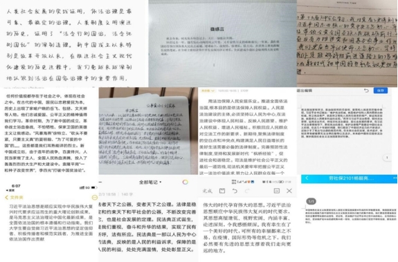“说真意讲宪法,诉真情学宪法”。公管学子在充分理解了习近平法治思想和中华人民共和国宪法内容的基础上,积极探讨交流,并在信纸上记录下自己的感言:“近几十年来,中国经济实力不断进步,这缺少不了宪法与法律的规范作用。宪法是国家根本法,是治国安邦的总章程,是党和人民意志的集中体现。”“伟大的时代孕育伟大的思想,习近平法治思想顺应中华民族伟大复兴的时代要求,其思想高屋建瓴、视野宏阔、内涵丰富、论述深刻,令我感触颇深。”……