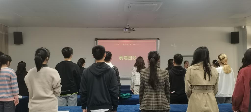 本次大会由姚瑶同学主持,在庄严的国歌声中拉开了序幕。