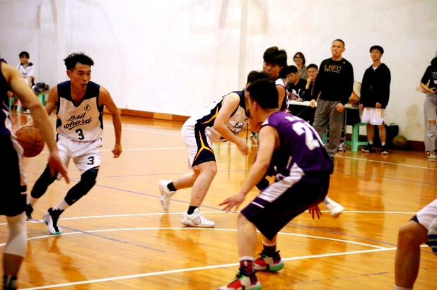在八强赛中,我们的对手是强者如林的金融队,他们凭借着五战全胜的强悍战绩进入八强。比赛于5月13日晚,在篮球北馆进行。比赛开场便尤为艰难,双方激烈拼抢,防守严密,随着樊骐源队员艰难的两分打进,这一场激烈的鏖战帷幕缓缓拉开。上半场双方激烈防守,我方球员进攻受困,对方也凭借身高优势控制住篮板。上半场结束,双方得分均为个位数。下半场开场,金融队凭借着三分的微小优势,将分差逐渐拉大。由于金融队长人如林,使得我队内线球员十分吃力,仅仅靠着两分跳投苦苦续分。很快金融队找到了他们的进攻节奏,使得我队在防守端连续吃瘪。对方多次二次进攻得分,很快他们的优势便来到了双位数。最终我队以十一分遗憾落败,止步于八强赛。