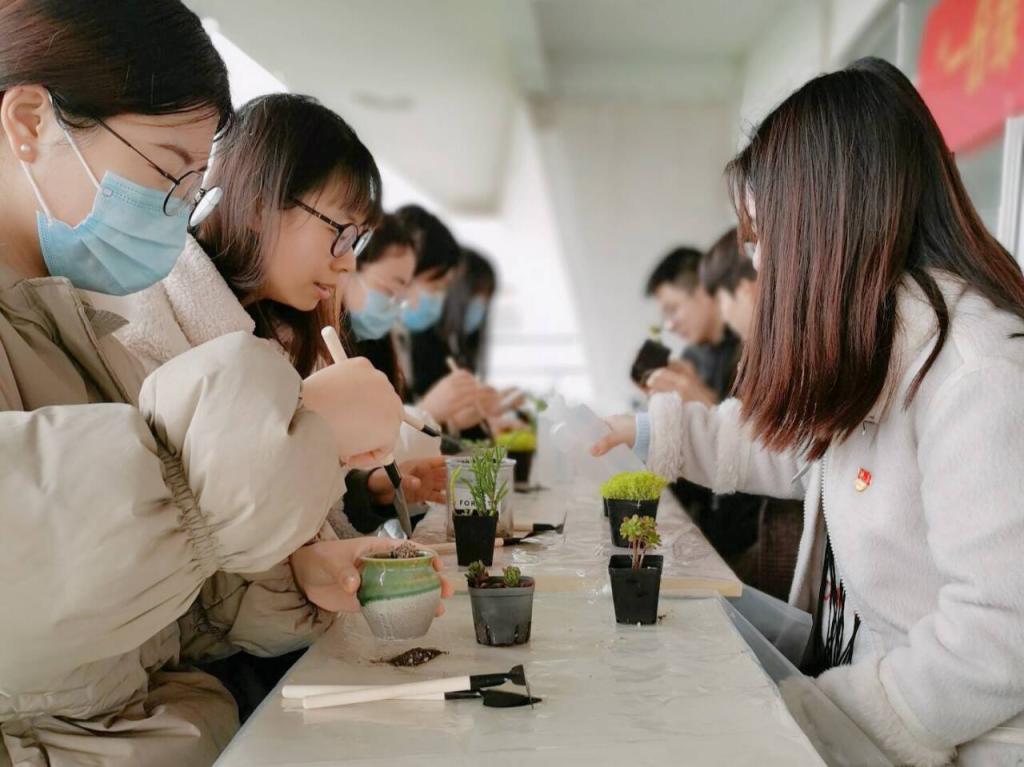 活动过程中,大家聚精会神,小心翼翼地为绿植填土、压实、浇水,每一个动作都流露出对绿植的呵护。在培育过程中,同学们深刻体会到了植物种植生长的不易,纷纷感慨看似简单的环节实际需要很多的耐心,保护环境亦是如此,十年树木非一日之功,绿色美好的环境也需要每一个人的耐心呵护。经过同学们的努力,一株株可爱的绿植为春光明媚的三月增添了一抹盎然的绿意,更是蕴涵了大家的希望之春。