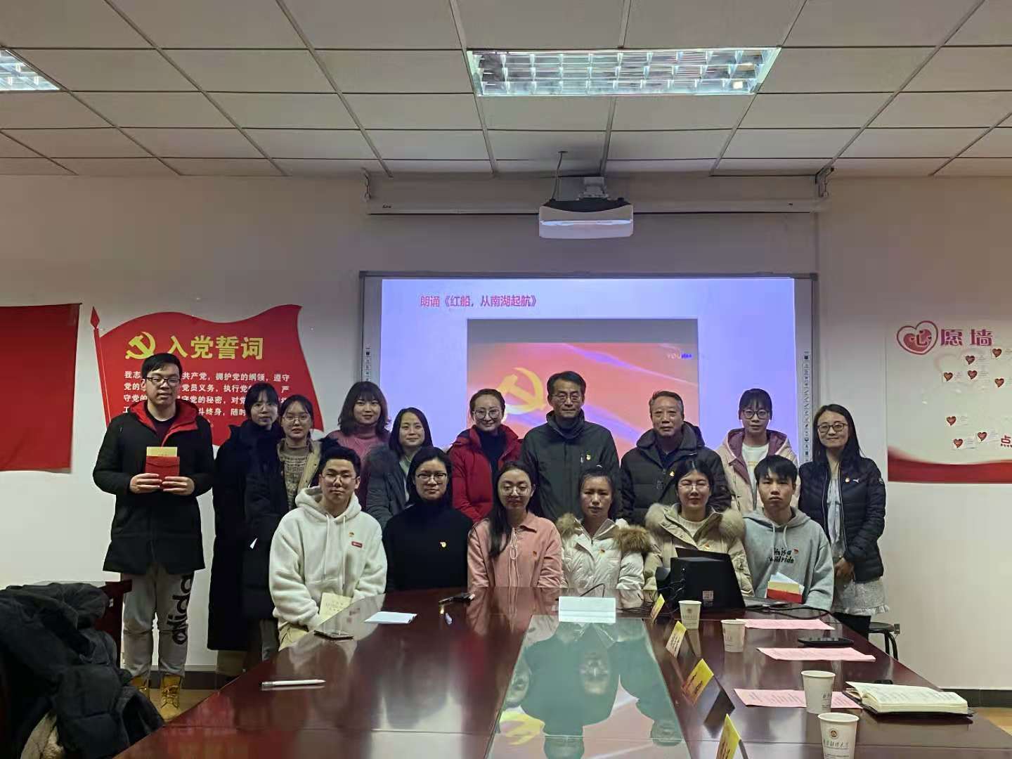 全体预备党员还以饱满的热情朗诵诗歌《红船,从南湖起航》,表达对党的祝福。