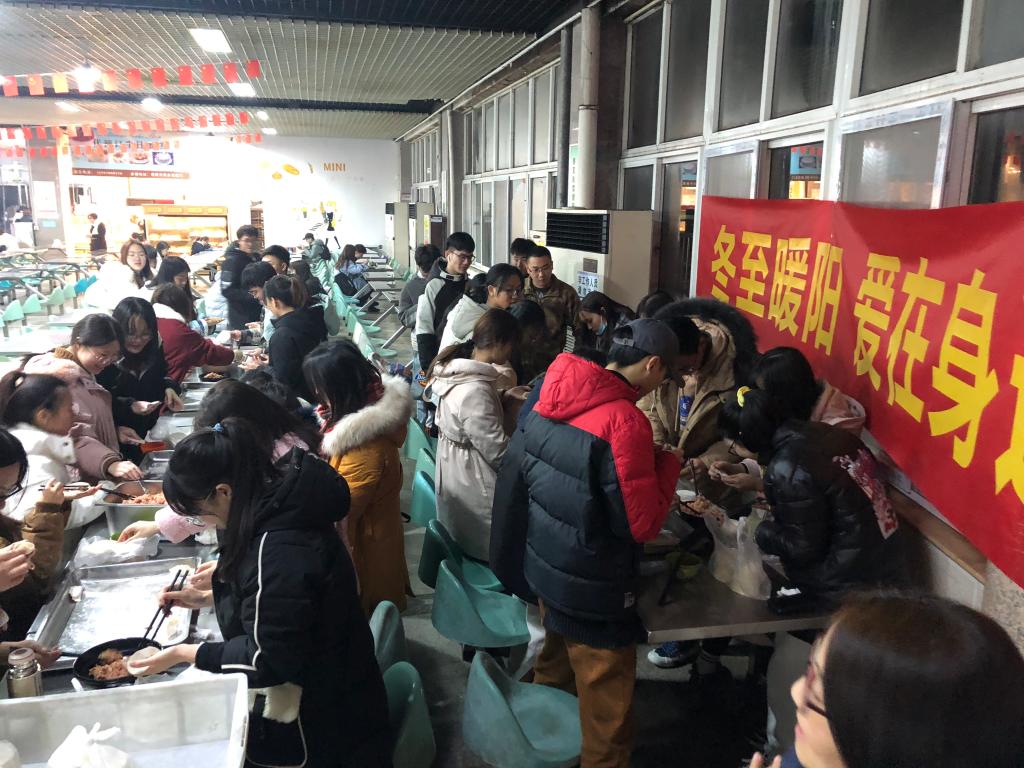 开展“冬至暖阳,爱在身边”活动,组织同学们在中苑食堂一起动手包饺子。