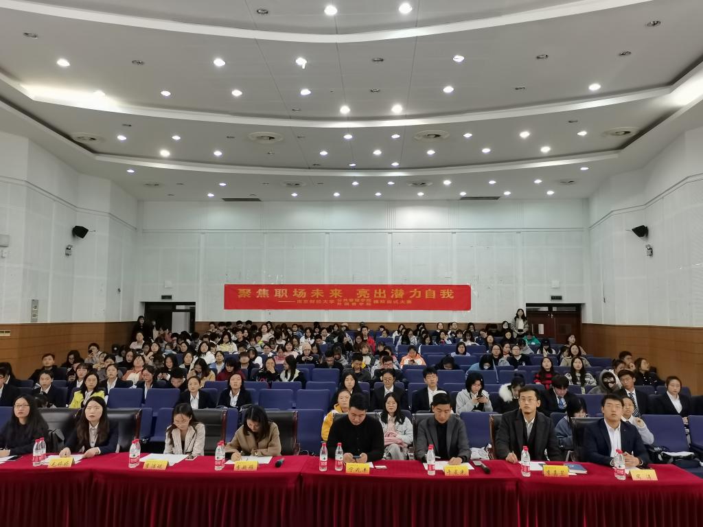 前期近两百名同学参与了此次模拟面试大赛的赛前培训,经过初选有20位同学脱颖而出进入决赛环节。大赛决赛设置选手的自我介绍、情景面试、无领导小组讨论,评委点评以及现场观众投票三个环节。现场邀请了南京链家房地产经纪有限公司、上海泽稷教育培训有限公司、南京众享教育科技有限公司、南京德渊教育科技有限公司负责人以及吃瓜视频