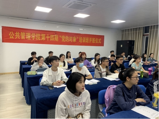 在德济楼502举行了第十四期“党的发展对象”培训班开班仪式。学院党委书记胡永远老师、党委副书记张荣霞老师、本科生党支部书记冯颖老师及培训学员参加了此次仪式。