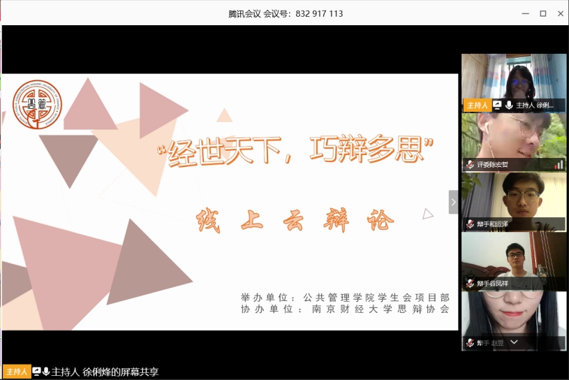 思辨协会协办的“经世致用,巧辩多思”线上云辩论比赛在腾讯会议上正式开展。本次活动邀请到了吃瓜视频