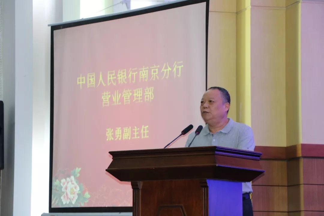 副校长邱伟芬教授为此次活动致开幕辞,人民银行南京分行营业管理部张勇副主任、江苏银行葛仁余副行长致辞。