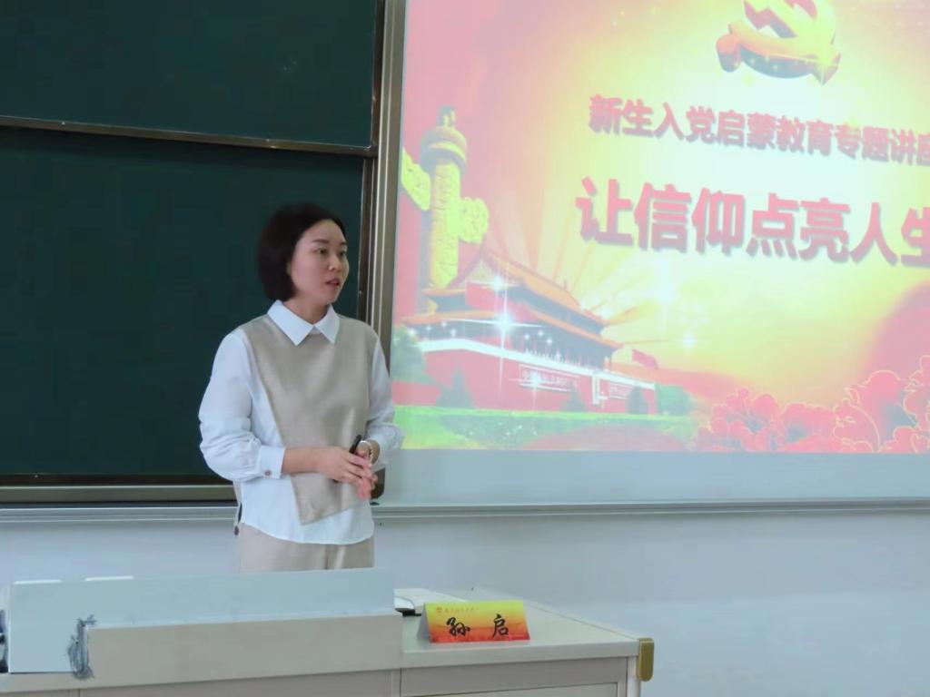 于博远楼308教室开展2023级新生入党启蒙教育。学院党委书记高晓东、党委副书记孙启、本科生党支部书记高敏、分团委书记于华、新生辅导员李小燕及全体2023级本科生、研究生参加会议。会议由孙启副书记主持。