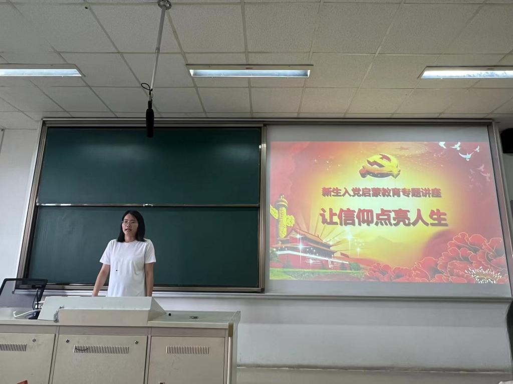 首先,高晓东书记发表讲话。高书记围绕“如何认识中国共产党”的问题,向我们讲述了中国共产党的发展历史、现状以及在发展过程中取得的一系列成绩和宝贵经验,重点阐述了中国共产党的三个特质。第一,中国共产党历经艰难困苦,是一个从艰苦斗争中成长起来的党,斗争经验丰富;第二,中国共产党善于针对当时所处的实际环境进行理论创新,不断开创新局面;第三,中国共产党勇于自我革命,具有自我净化、自我完善、自我革新、自我提高的能力。最后,高书记鼓励大家积极向党组织靠拢,树立崇高的理想信念,为党注入新鲜血液。