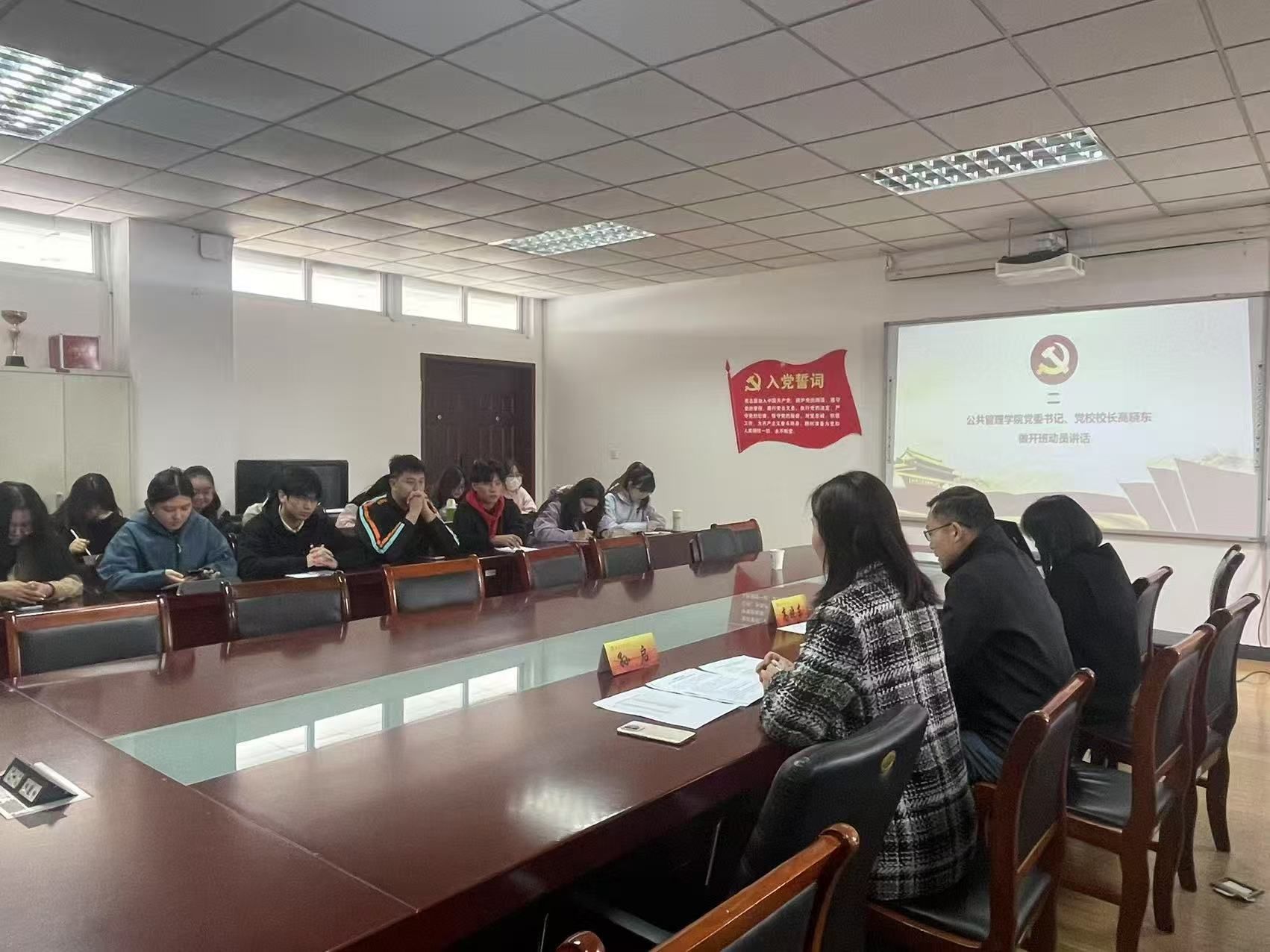 党的第二十三期发展对象培训班开班仪式暨党课第一讲。学院党委书记、分党校校长高晓东,党委副书记、分党校副校长孙启,研究生党支部书记丁洁以及培训班共计17名学生参加,仪式由孙启副书记主持。